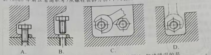 194.(2020年浙江省高职考)从螺栓装拆分析,下列装配工艺结构合理的是( )