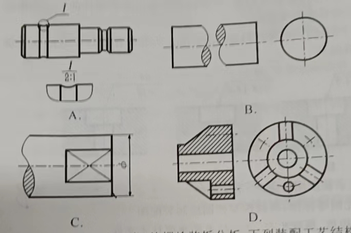 188.(2020年浙江省第五次联考)关于普通平键连接图的画法,下列表述错误的是( )
