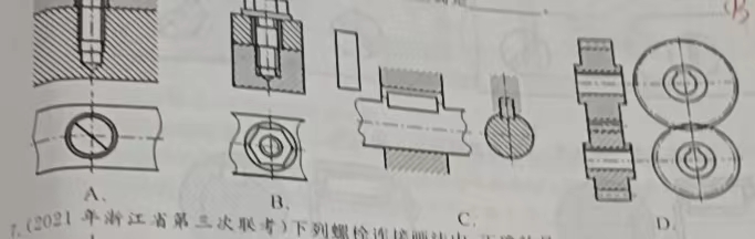 181.(2021年浙江省第三次联考)下列螺栓连接画法中,正确的是( )