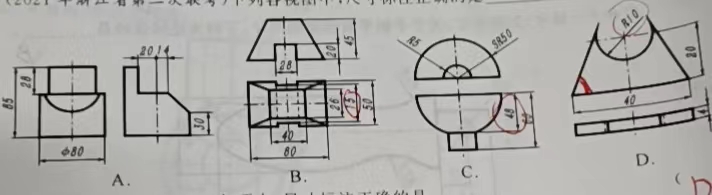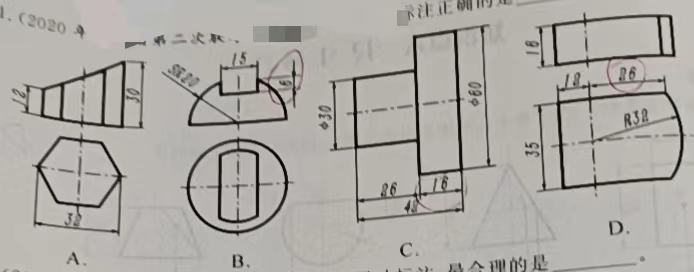 116.(2020年浙江省高职考)下列各图尺寸标注,合理的是( )