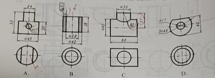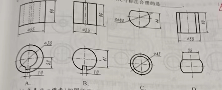 117.(2019年浙江省高职考)下列四组视图中,尺寸标注合理的是( )