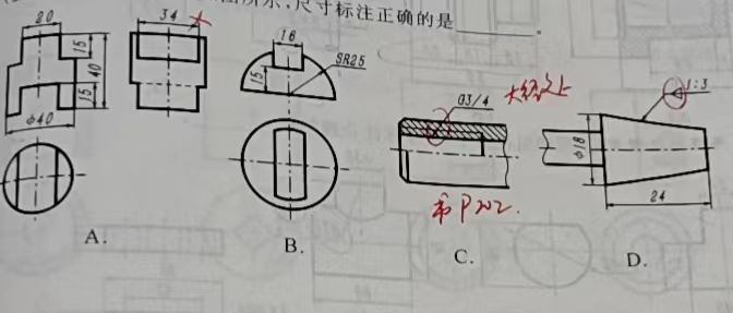 119.(2021年宁波二模考)如图所示,尺寸标注正确的是( )