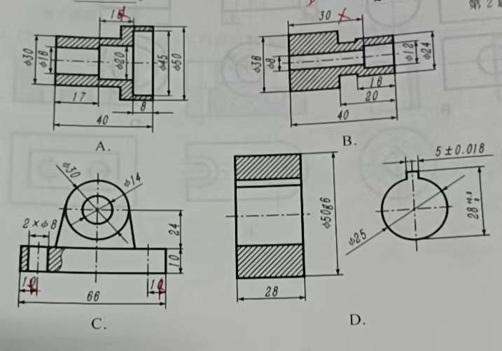 116.(2020年浙江省高职考)下列各图尺寸标注,合理的是( )