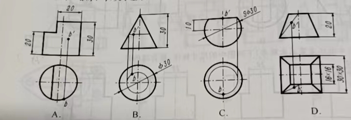 114.(2021年浙江省高职考)关于基本几何体表面求点和尺寸标注,表达正确的是( )