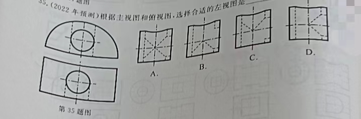 113.(2022年预测)根据主视图和左视图,选择合适的俯视图是__________。( )