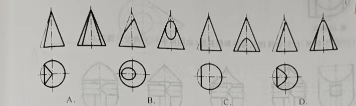 100.(2020年浙江省第一次联考)以下四组视图中,圆锥的截交线为抛物线的是_________ ( )