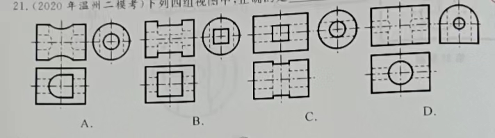 98.(2020年温州二模考)下列四组视图中,正确的是_________ ( )