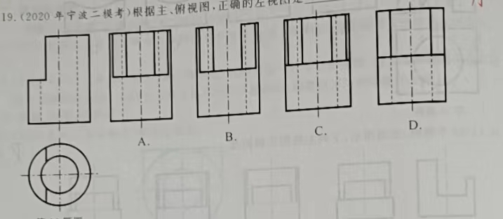 103.(2020年浙江省第四次联考)读懂左视图、俯视图,正确的主视图是_________ ( )