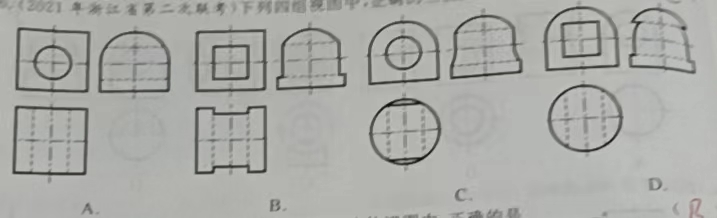 98.(2020年温州二模考)下列四组视图中,正确的是_________ ( )