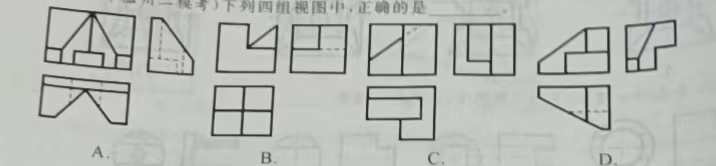 98.(2020年温州二模考)下列四组视图中,正确的是_________ ( )