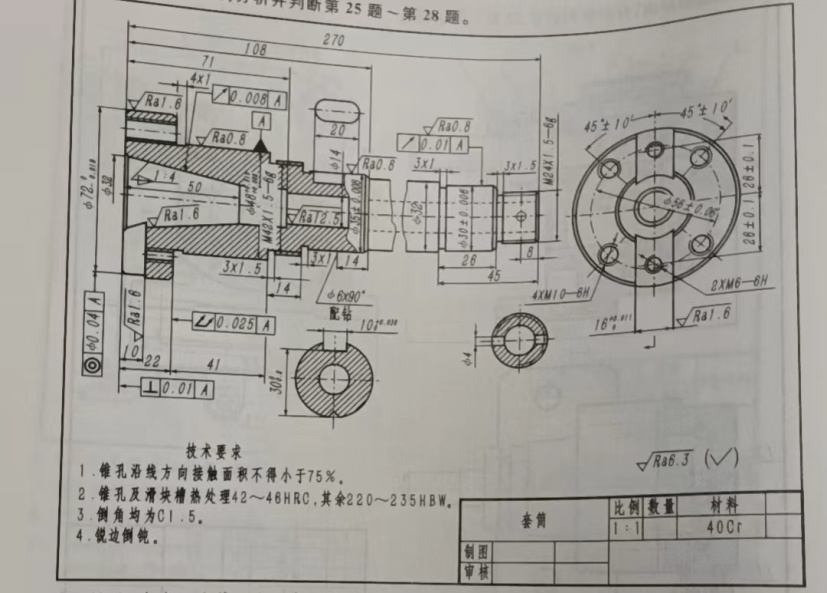 191.(2021年浙江省第二次联考)(零件图见本书第71页)图上螺纹M24×1.5-6g可用采用三针法对螺纹中径进行比较精密的测量。( )