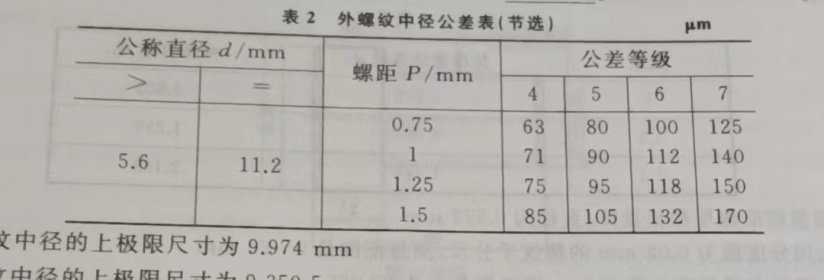 107.(2021年浙江省第三次联考)用三针法检测螺纹M20-6e中径尺寸,查附表可得标准量针直径d0=1.441mm,中径参数C60=2.158mm,螺纹中径d2=18.376mm,上极限偏差es=-0.080mm,中径公差Td2=0.170mm,则螺纹中径的极限尺寸为_______。若当前测得的跨距平均值M=20.413mm,则该螺纹( )