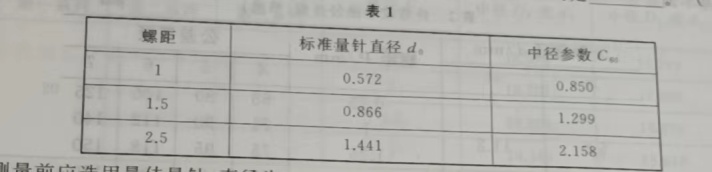 (2)三针法检测螺纹的量针直径大小d0和中径参数一般根据螺距选择