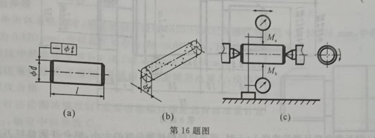 96.(2020年浙江省第二次联考)如图所示为检测零件的直线度的示意图。(1)测量设备准备:平板,顶尖架,带指示计的测量架等。(2)测量步骤:①清洁零件的测量表面、平板及指示计的触头等。②将被测零件安装在平行于平板的两顶尖之间。③调整测量指示计。④沿铅垂轴截面的两条素线测量,同时分别记录两指示计在各自测点的读数Ma、Mb;取各测点读数差之半,即( Ma-Mb)/2的最大值作为该载面轴线的直线度误差。⑤按上述方法测量若干截面,取其中最大的误差值作为该被测零件轴线的直线度误差。下列叙述正确的是( )