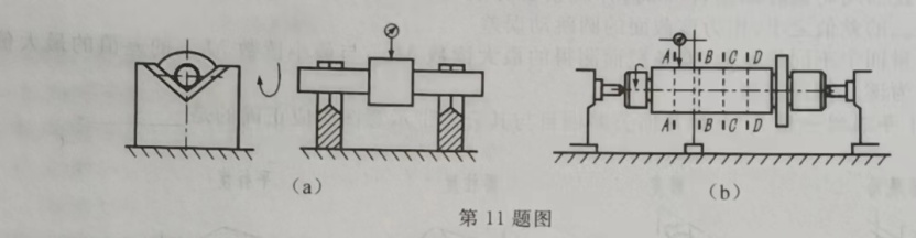 96.(2020年浙江省第二次联考)如图所示为检测零件的直线度的示意图。(1)测量设备准备:平板,顶尖架,带指示计的测量架等。(2)测量步骤:①清洁零件的测量表面、平板及指示计的触头等。②将被测零件安装在平行于平板的两顶尖之间。③调整测量指示计。④沿铅垂轴截面的两条素线测量,同时分别记录两指示计在各自测点的读数Ma、Mb;取各测点读数差之半,即( Ma-Mb)/2的最大值作为该载面轴线的直线度误差。⑤按上述方法测量若干截面,取其中最大的误差值作为该被测零件轴线的直线度误差。下列叙述正确的是( )