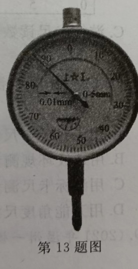 43.(2021年浙江省第三次联考)如图所示的内径量表用∅30mm的专用环规校对零位,测量内孔时指针逆时针转动,且不超过半圈,则该内孔的实际尺寸是________mm. ( )
