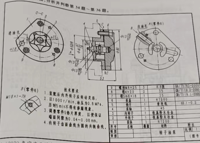 289.(2020年宁波三模考)转子油泵属于液压系统的能源部分,在C-C图中,内、外转子应该逆时针旋转。( )
