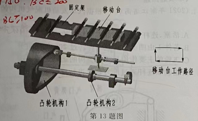 148.(2021年温州二模考)如图为一种圆珠笔芯装配线上的“联动一送进”装置,其中凸轮机构2的从动件与移动台为一体,移动台工作路径如图所示,下列表述错误的是( )