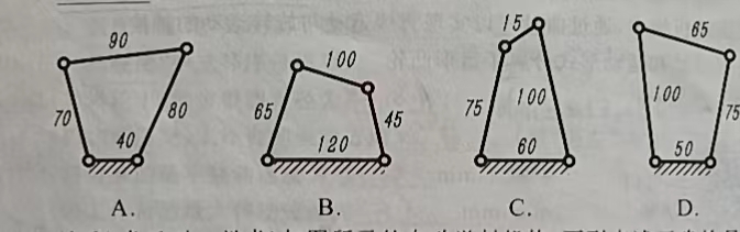143.(2021年宁波二模考)如图所示四杆机构,已知各杆长度分别为AB=50mm,BC=150mm,CD=90mm,AD=120mm。下列说法正确的是( )