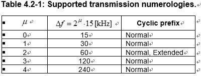 = 0 代表等同于LTE 的 15kHz,其他的各项配置如 38.211 中 4.2.1 表格所示: