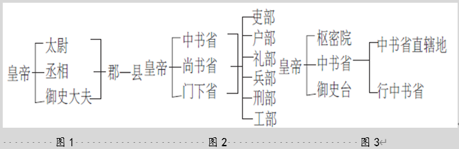 4.下列图1、图2、图3反映的是中国古代封建王朝行政机构设置的主要情况,其中图3反映的朝代是()