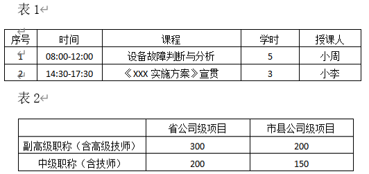 8.某地市公司举办一期培训班,邀请公司小周、小李进行授课,课程安排如表格1。小周是兼职培训师、副高工程师/技师,小李是工程师/高级技师。请问:(1)应给小周发放多少课酬?(2)给小李发放600元课酬,是否符合规定,为什么?