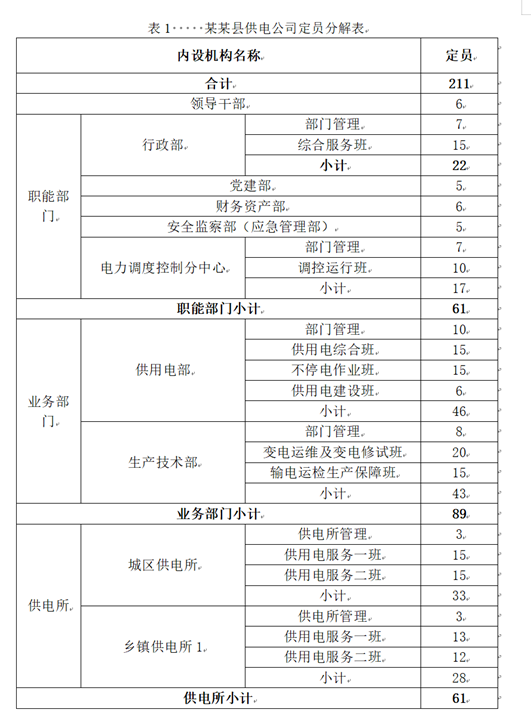 6.某某县供电企业职能管理部门编制数上限为28,该公司人资工作人员小明为做好融合型组织和复合型岗位体系建设工作,依据相关文件要求重新分解了本单位定员,请问小明制定的定员分解表中存在多少处错误,分别错在了哪里?