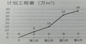49.某分项工程月计划工程累计曲线(单位:万m)如下图所示,该工程1~4月份实际工程量分别为9万m、6万m、15万m和9万m,则通过比较获得的正确结论是()。