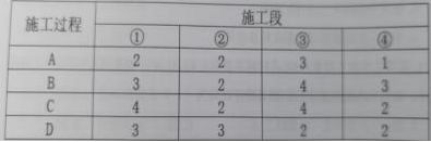 28.某工程由4个施工过程组成,分为4个施工段进行流水施工,其流水节拍见下表,则施工过程A与B、B与C、C与D之间的流水步距分别为()。