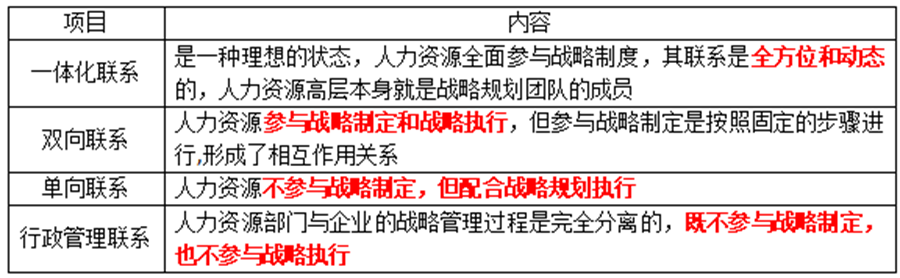 单向联系,是指人力资源部门能够参与战略制定的过程