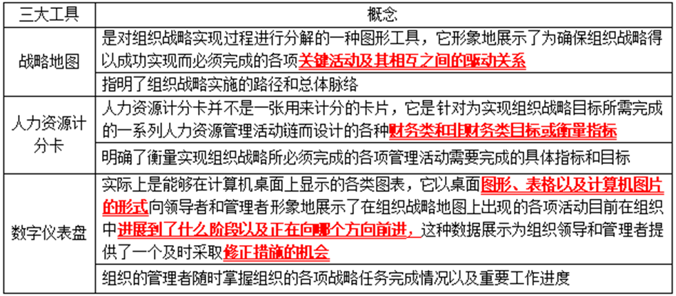 战略性人力资源管理中()这一工具,其作用是明确了衡量实现组织战略所必须完成的各项管理活动需要达成的具体指标和目标.