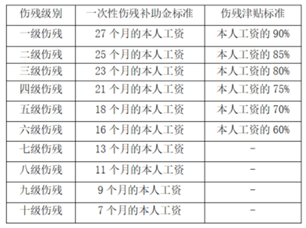 从工伤保险基金中按伤残等级支付一次性伤残.补助金标准为:一级伤残为( )个月的本人工资,二级伤残为( )个月的本人工资.