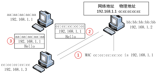 68.攻击者通过向网络或目标主机发送伪造的 ARP 应答报文,修改目标计算机上 ARP 缓存,形成一个错误的 IP 地址<->MAC 地址映射,这个错误的映射在目标主机在需要发送数据时封装错误的 MAC 地址。欺骗攻击过程如下图所示,其属于欺骗攻击中的哪一种欺骗攻击的过程()
