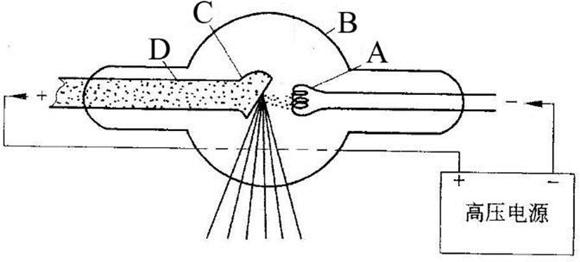38、在下图所示X射线管示意图中()结构被加热到白热化时会释放电子云。