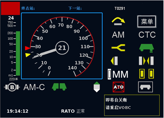 (98)根据《城市轨道交通信号系统运营技术规范(试行)》,城市轨道交通车载信号人机界面如下图所示,图中蓝色方框中代表的是什么内容?( )