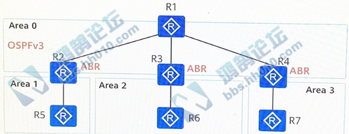 348.如图所示的拓扑,已知所有路由器运行OSPFv3协议,且邻居关系均正常建立,R1上不会产生哪些类型的LSA?