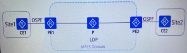 251.如图所示,PE1和PE2与各自CE之间均通过OSPF交换私网路由信息,且在PE1和PE2上均配置了相同的Domai lD.当在PE2上从BGP向OSPF引入路由时,可能会向CE2传递下列哪些类型的SA?