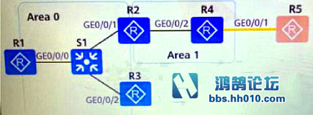 244.如图所示,路由器所有的接口开启OSPF,图中标识的IP地址为设备的loopback0接口的IP地址,R1,R2,R3的loopback0通告在区域1,R4的loopback0通告在区域0,R5的loopback0通告在区域2,下列哪些IP地址之间可以相互ping通