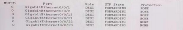 272.如图信息是某运行 STP 的交换机上所显示的端口状态信息 。根据这些信息, 下面的描述错误的是 ( )。