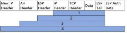 254.如下图所示, IPSec 采用隧道模式,则 ESP 加密的范围是?