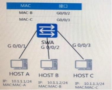 257.如下图所示网络,SWA 的 MAC 地址表如下, 交换机始终学习不到 HOSTA 的 MAC 地址,不可能是以下哪种原因?