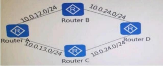 252.如图所示, RTA 的 G0/0/0 和 G0/0/1 接口分别连接到两个不同的网段, RTA 为这两个网络的网关。 主机 A 在发送数据给主机 C 之前,会先发送 ARP Request 来获取( )的 MAC 地址。