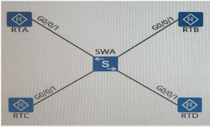 794.如图所示的广播网络中,OSPF 运行在四台路由器上,且在同一个区域,同一网段,OSPF 会自动选举一个 DR,多个 BDR,从而达到更好的备份效果