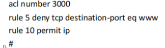 517.如图所示的网络。管理员希望所有主机都不能访问 Web 服务(端口号为 80).其它服务正常访问。则在 G0/0/ 1的接口配置中 trattie-frilter outbound 需要绑定哪个 ACL 规则?()