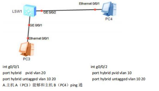 #### A. 交换机 GE0/0/1 端口在发送 VLAN20 的数据帧时, 不携带 VLAN 标签