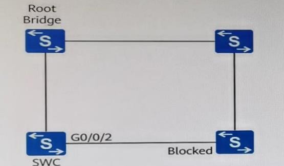 615.如图所示,四台交换机都运行 STP,各种参数都采用默认值。如果交换机 C 的 G0/0/2 端口发生阻塞并无法通过该端口发送配置 BPDU,则网络中 Blocked 端口多久之后会进入到转发状态?//