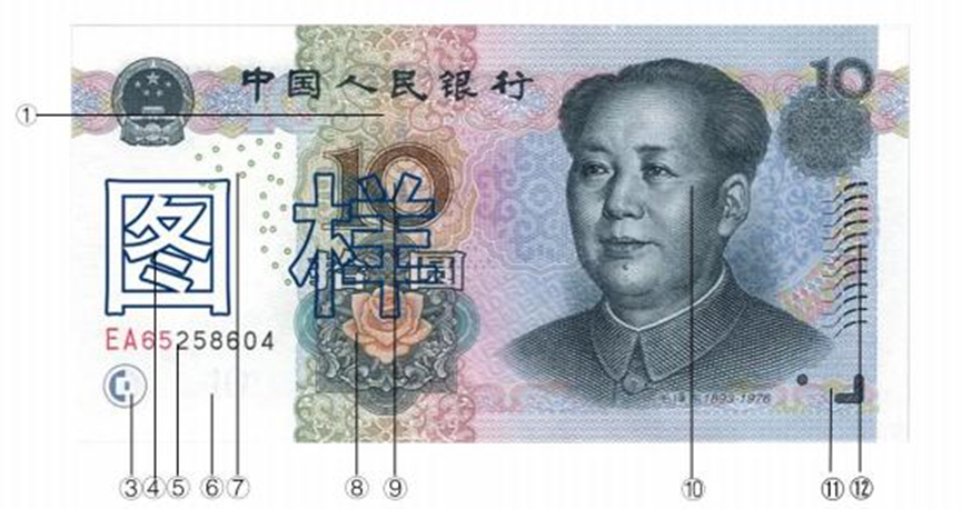 456、10元,下列选项中对图片上标⑩防伪特征名称描述正确的是( )。