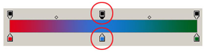 1、(31) 在【渐变编辑器】对话框中有如图所示的颜色条,位于色条上部和下部的小方块分别用来调节渐变色的()属性。
