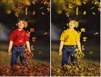 1、(23) 要将左图所示的人物服装由红色转换为黄色,一个非常简单快捷的调节方法是应用( )功能,它可以先选中图像中某一种颜色区域,然后直接调节色彩属性,将颜色选区中的颜色替换为你所需的色彩。
