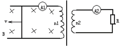 16.理想变压器原、副线圈的匝数比n1:n2=4:1,当导体棒在匀强磁场中向左做匀速直线运动切割磁感线时,图中电流表A1的示数12mA,则电流表A2的示数为()。